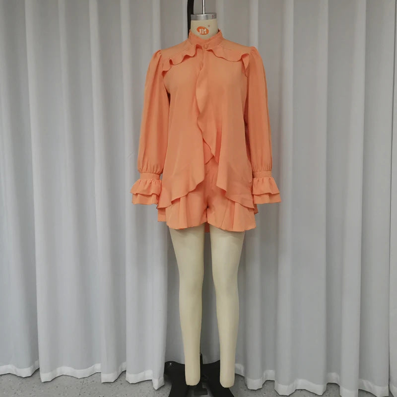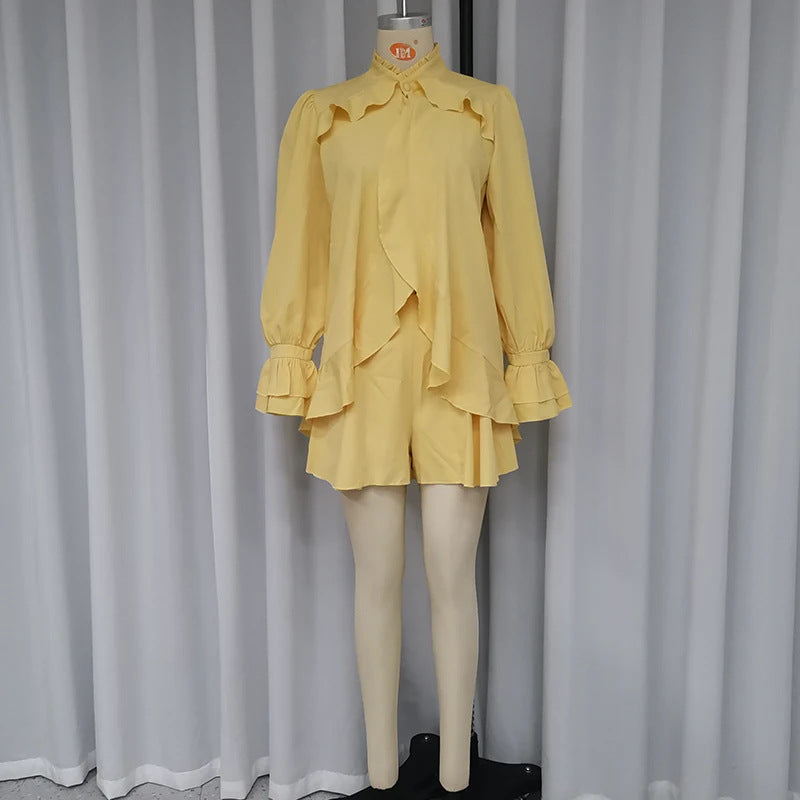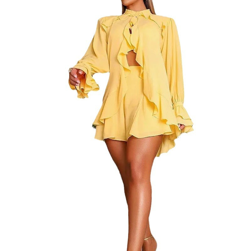 Fashion Ruffles Pantskirt Three-piece Set For Women